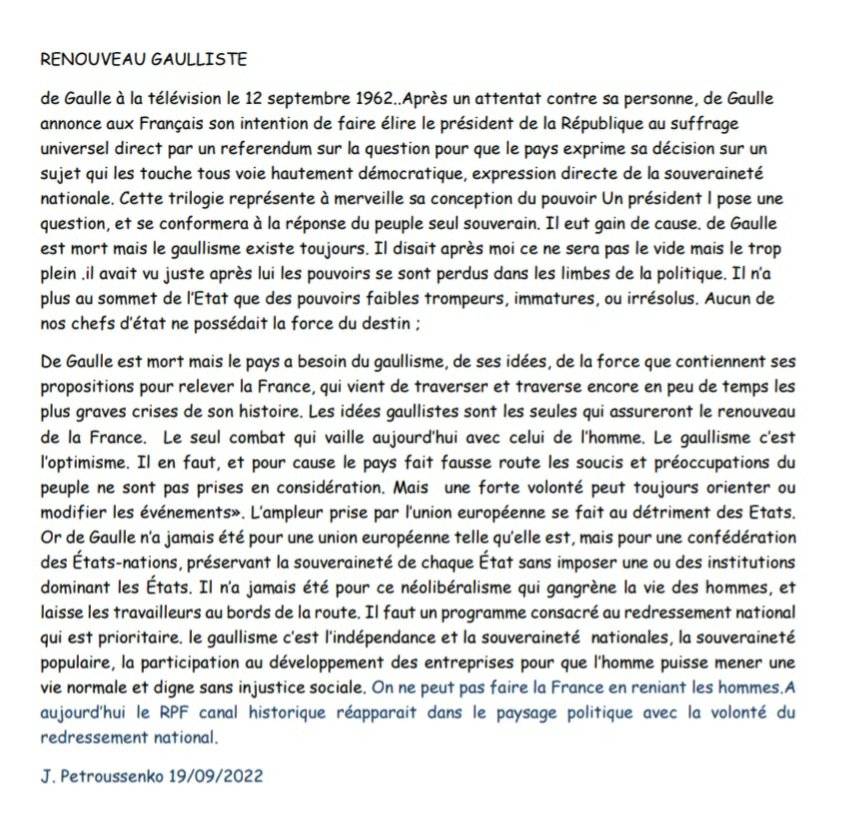 Renouveau gaulliste Républicains Gaullistes23 septembre 2022Non classé Navigation des articles PrécédentSuivant Partager : Cliquer pour partager sur X(ouvre dans une nouvelle fenêtre) X Cliquez pour partager sur Facebook(ouvre dans une nouvelle fenêtre) Facebook J’aime chargement… Similaire